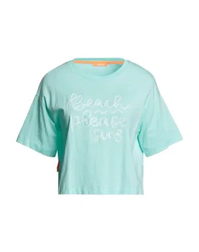 Woman T-shirt Turquoise Size L Cotton In Blue