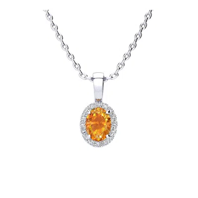 1 Carat Oval Shape Gemstone And Halo Diamond Necklace In Sterling Silver With 18 Inch Chain In Metallic