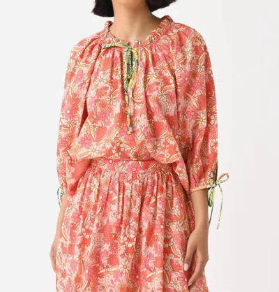 Floral Contrast Blouse In Orange Floral In Pink