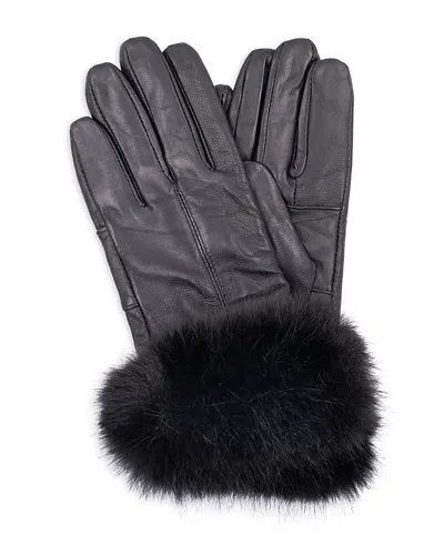 Faux Fur Trim Leather Gloves In Black/black
