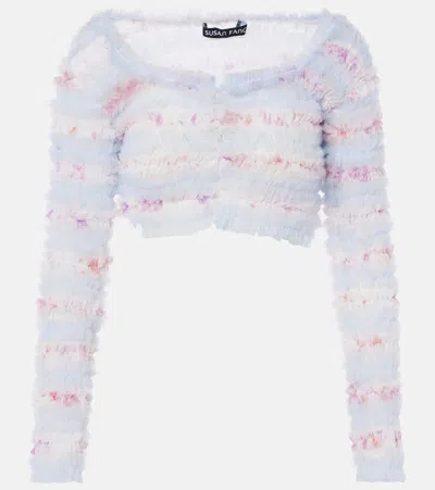 Air-flower Floral Tulle Midi Dress In Blue/pink