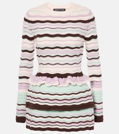 Striped Puff-sleeve Midi Dress In Multicoloured