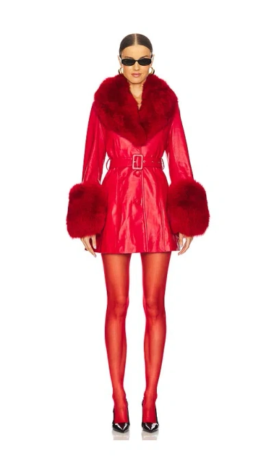 Dorothy Leather Coat With Fur Trim In Burgundy