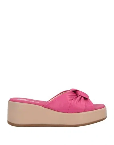 Woman Sandals Magenta Size 6 Leather In Pink