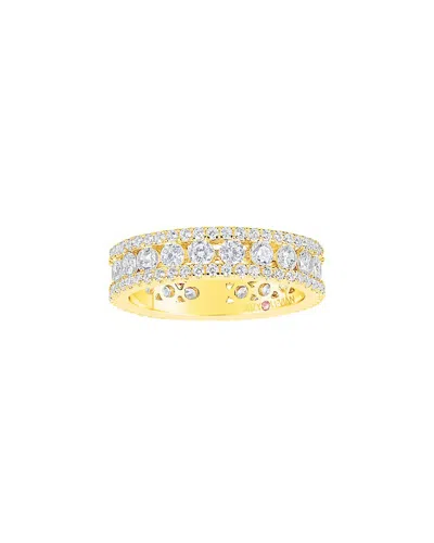 Golden Sterling Silver Cubic Zirconia White Three Row Modern Eternity Band In Yellow