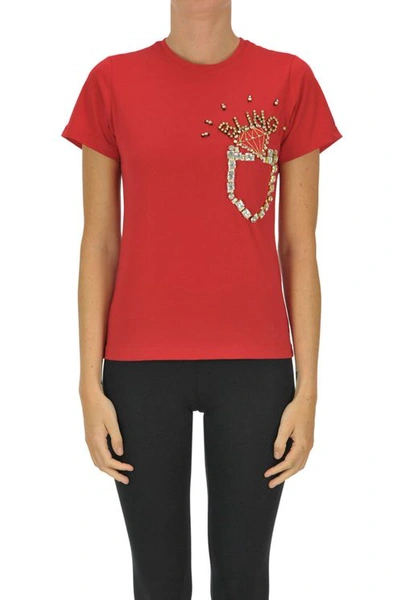 Embellished Cotton T-shirt In Red