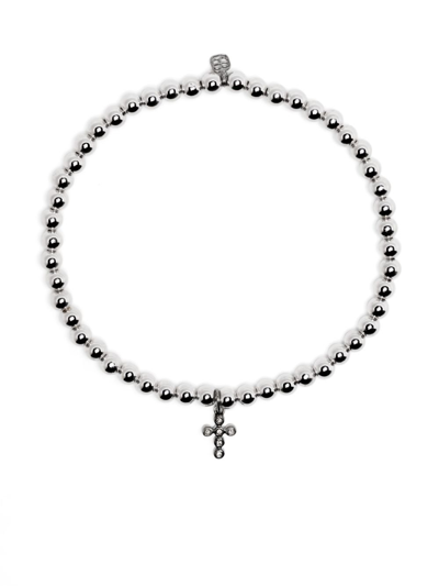 14kt White Gold Cross Charm Beaded Bracelet In Silver