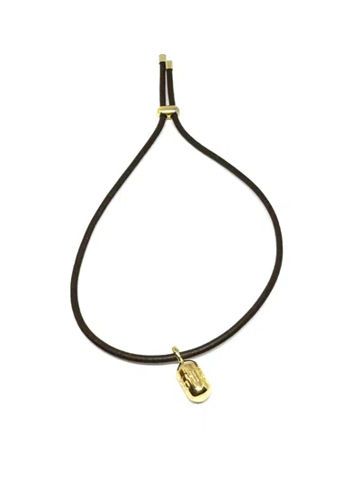 Micro Fortune Buoy On Leather Bracelet In Gold