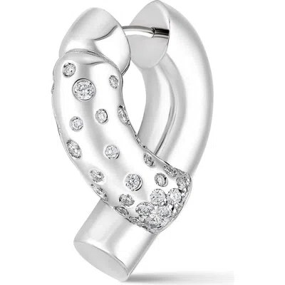 Oera Half Rib Diamond Hoop Earrings In White Gold
