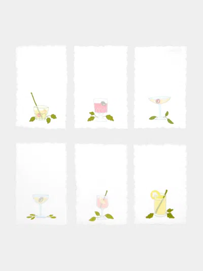 Bicchieri Hand-embroidered Linen Cocktail Napkins (set Of 6) Abask Gift Set In Multi