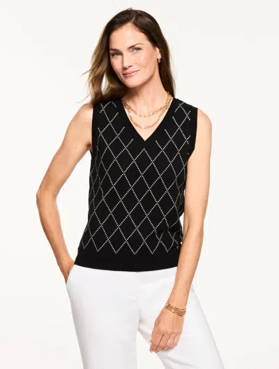 Petite - V-neck Sweater Shell - Bias Plaid - Black/ivory - Medium In Multi