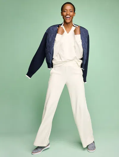 Cozy Fleece Sweatshirt - Picot Trim - Ivory - Large In Multi