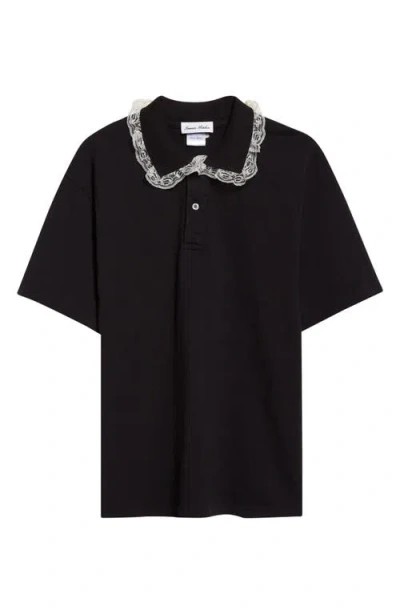 Gender Inclusive Cletus Lace Trim Polo In Black