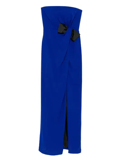 Natalie Bow-detail Strapless Midi Dress In Blue