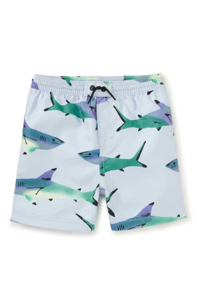 Kids' Mid-length Swim Trunks In Painted Sharks