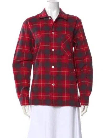 Pre-owned Plaid Print Long Sleeve Button-up Top In Red