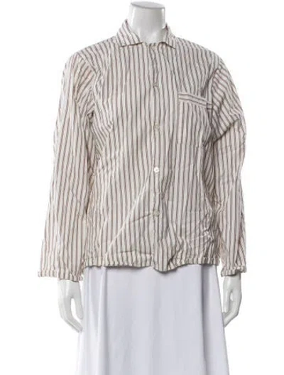 Pre-owned Striped Long Sleeve Button-up Top In White
