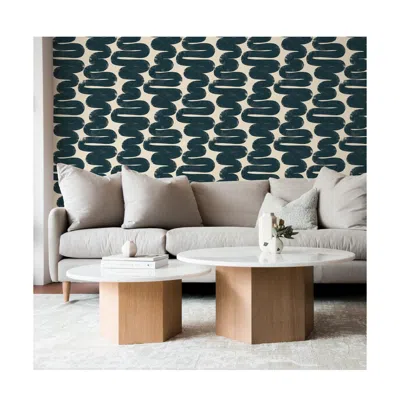 Wiggle Room Peel And Stick Wallpaper In Blue Cream