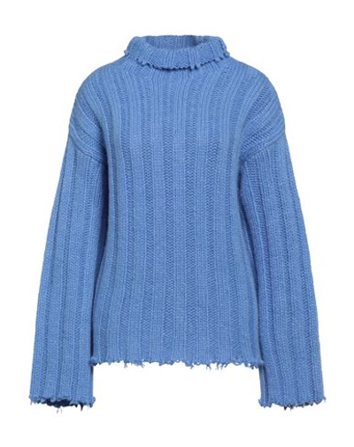 . Woman Turtleneck Azure Size M Mohair Wool, Wool, Polyester In Blue