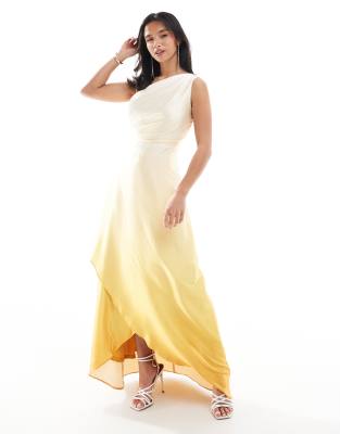 Bridesmaid One Shoulder Satin Maxi Dress With Wrap Skirt In Yellow