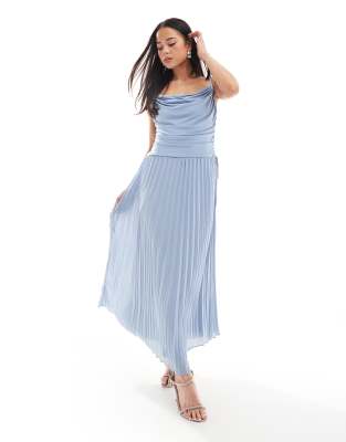 Bridesmaid Cowl Neck Maxi Dress With Pleated Skirt In Blue