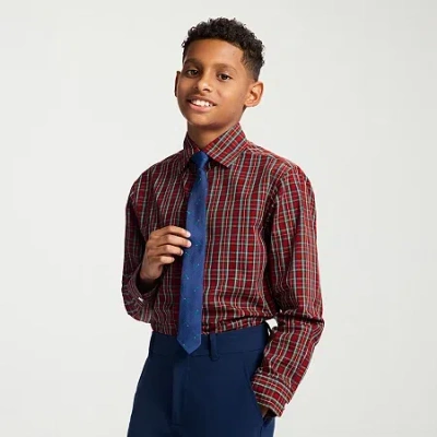Little & Big Kid Boys Long Sleeve Point Collar Shirt + Tie Set In Red