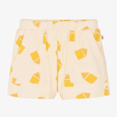 Babies' Ivory Beach Hut Towelling Shorts In Yellow Beach Hut