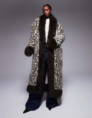 Exclusive Faux Fur Oversized Collar Maxi Coat In Brown