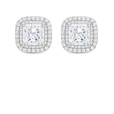 Women's White / Silver Emerald-cut & Pear Halo Drop Earrings