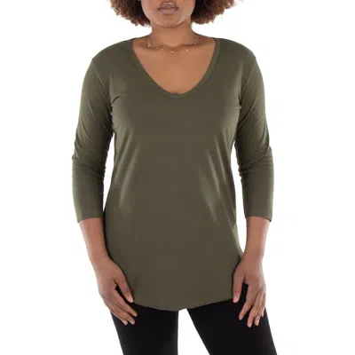 Olive 3/4 Sleeve V-neck Tunic Top In Green