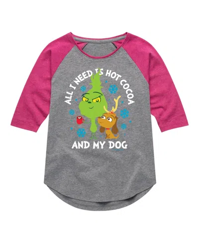 Kids' Big Girls Grinch Graphic Raglan Top In Gray