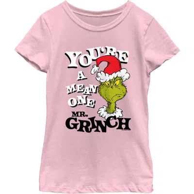Kids' Girl's Christmas Grinch You're A Mean One Portrait Graphic T-shirt In Pink