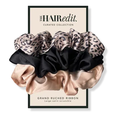 Ruched Ribbons Skinny Satin Scrunchies Set - Black