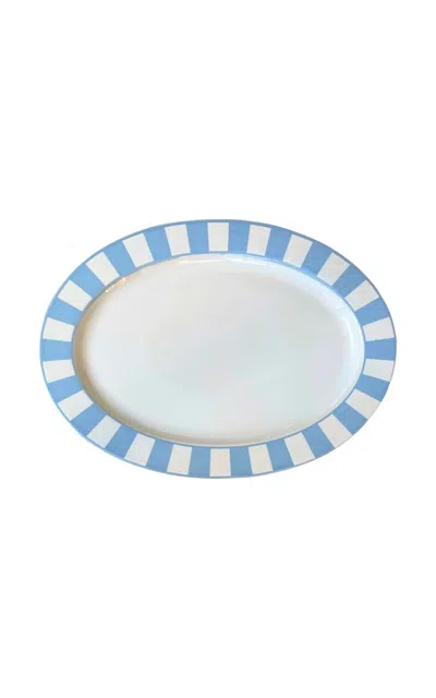 Essentials Navy-white Serving Plate Oval 17" In Blue