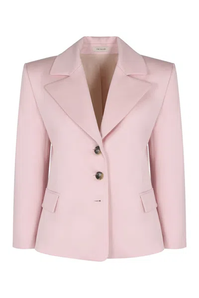 Silk Blazer With Textured Lapel And Cropped Length In White