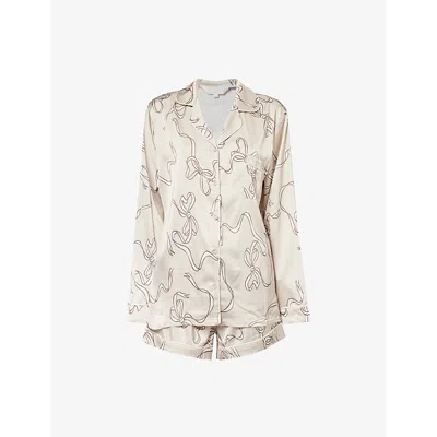 Womens Graphic-print Long-sleeve Jersey Pyjama Set Beige Bow