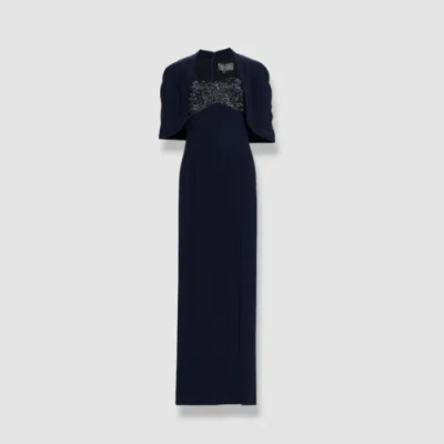 Pre-owned $945 Women's Blue Brigitta Beaded Capelet Cape Gown Dress Size 4