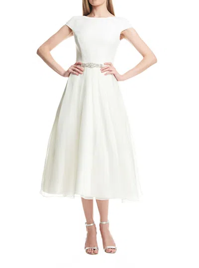 Pre-owned Ivory Silk Organza Tea Length Formal Or Wedding Dress Size 0 2 4 8 Or 10 In White