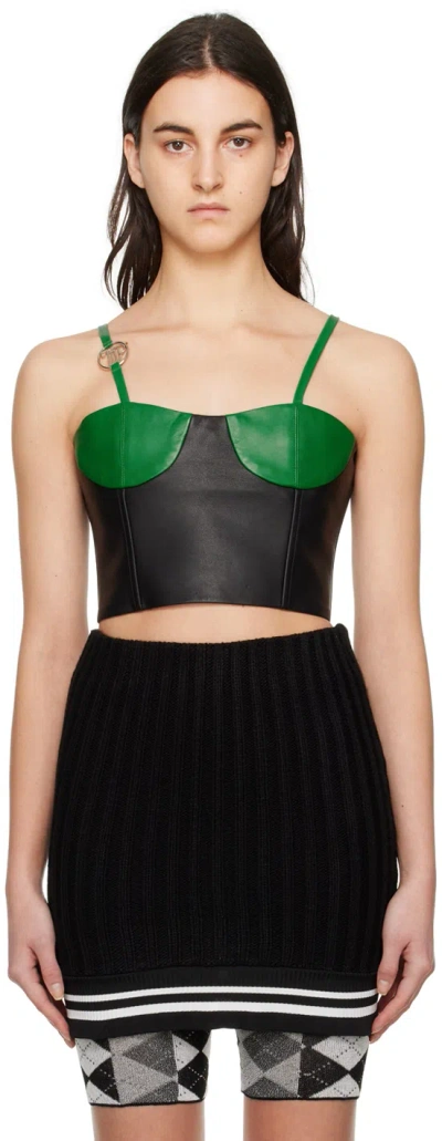 Ssense Exclusive Black & Green Paneled Leather Miniskirt In Green/black
