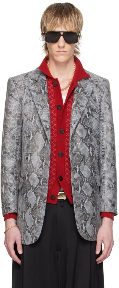 Ssense Exclusive Gray Leather Blazer In 6053 Python