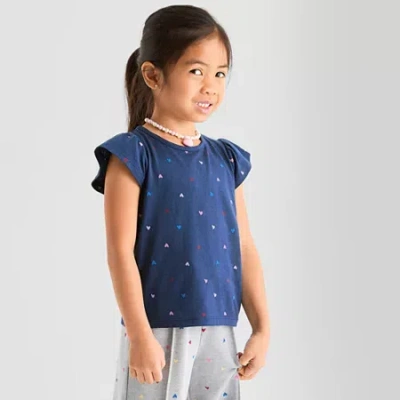Kids' Little Girls Round Neck Short Sleeve Regular Fit Graphic T-shirt In Blue