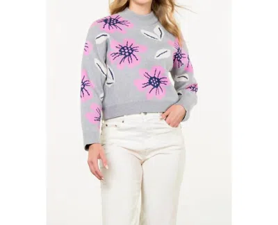 Short Sleeve Floral Detail Knit Cardigan In Black In Multi
