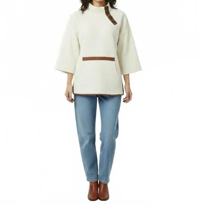 Pearl Button Mixed Media Collared Knit Top In Navy In Blue