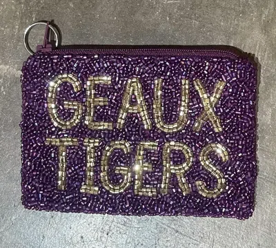 Geaux Tigers Beaded Small Coin Purse In Purple/gold In Pattern