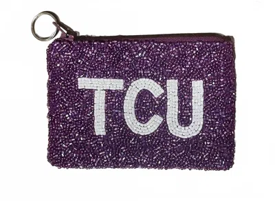 Tcu Beaded Small Coin Purse In Purple/white In Multi