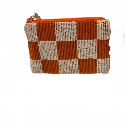 Ut Checker Board Beaded Small Coin Purse In Orange/white In Multi