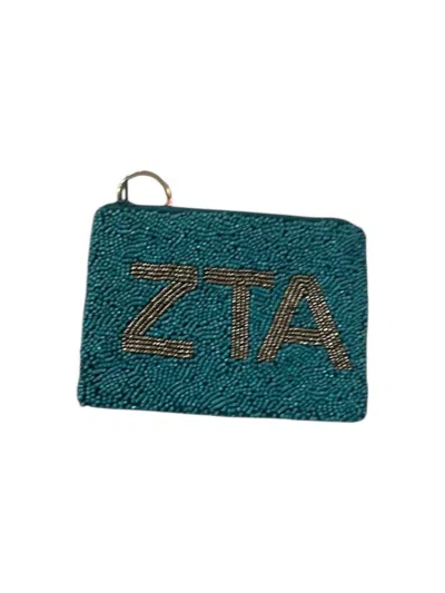 Zta Beaded Small Coin Purse In Green