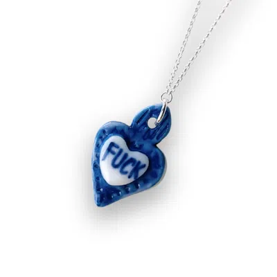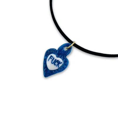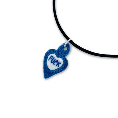 Women's Blue Sacred Heart Rebel Porcelain Choker Necklace - Sterling Silver