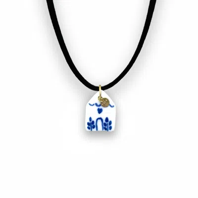 Women's Trullo House Porcelain Choker Necklace – Gold Plated In Black