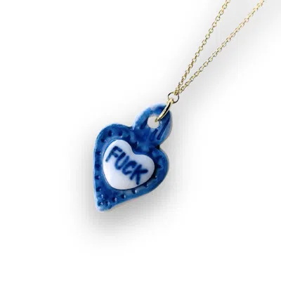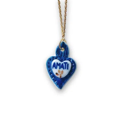 Women's Sacred Heart Amati Gold & Blue Porcelain Necklace – Gold Plated